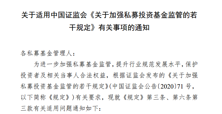 1月26日晚間,中國證券投資基金業(yè)協(xié)會在資產管理業(yè)務綜合報送平臺發(fā)布了《關于適用中國證監(jiān)會<關于加強私募投資基金監(jiān)管的若干規(guī)定>有關事項的通知》(以下簡稱《通知》),明確了公司名稱、經營范圍整改的“新老劃斷”問題。